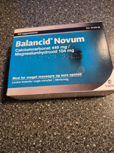 Balancid Novum is an antacid tablet used to alleviate digestive discomfort caused by excessive stomach acid. It contains calcium carbonate and magnesium hydroxide as active ingredients. This product is marketed in Denmark and produced in multiple locations due to the global operations of its parent company, Viatris. As a merger of Mylan and Upjohn, Viatris brings together a wide range of pharmaceutical expertise and product offerings. The ultimate owner, Viatris Inc., is headquartered in the United States, continuing the legacy of its founding companies while providing accessible healthcare solutions worldwide.