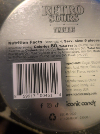 Iconic Candy is an American brand known for its nostalgic candy products, including the Retro Sours line. These candies are crafted to evoke the flavors of traditional sweets, and the Tangerine variant is no exception. The product is manufactured primarily in China, ensuring a blend of quality and cost-effectiveness while allowing the brand to deliver nostalgic flavors to its consumers. Iconic Candy LLC focuses on creating unique candy experiences and is headquartered in the USA.