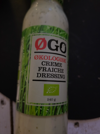 ØGO is a Danish brand known for its organic food products. The 'ØGO Ökologisk Creme Fraiche Dressing' is a specialty dressing made from creme fraiche, emphasizing its organic ingredients sourced primarily in Denmark. The product aligns with the growing demand for natural and organic foods, appealing to health-conscious consumers. Its clear labeling highlights its certification and commitment to quality.