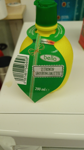 Bella Zitronen-Säuerungsmittel is a lemon acidifier used in various culinary applications to add a tart flavor. It is available in a 200 ml bottle, as seen in Austrian retail outlets. The product is manufactured in Austria, aligning with the brand's regional presence.