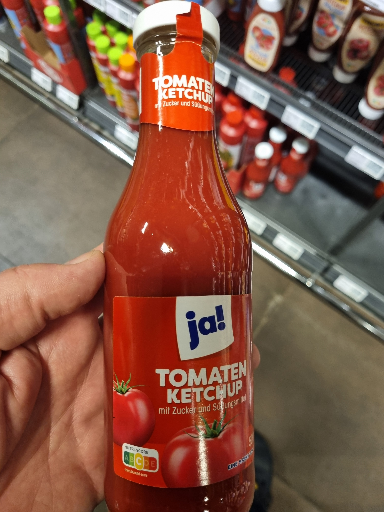 Das Produkt ist ja! Tomaten Ketchup, ein beliebter Ketchup aus Deutschland, der von der REWE Group hergestellt wird. Die Marke 'ja!' ist bekannt für ihre Produkte im Discount-Preissegment und wird hauptsächlich in deutschen Supermärkten verkauft. Das Ketchup ist vielseitig einsetzbar und wird aus hochwertigen Tomaten hergestellt, oft mit zusätzlichem Zucker und Gewürzen für den besten Geschmack.