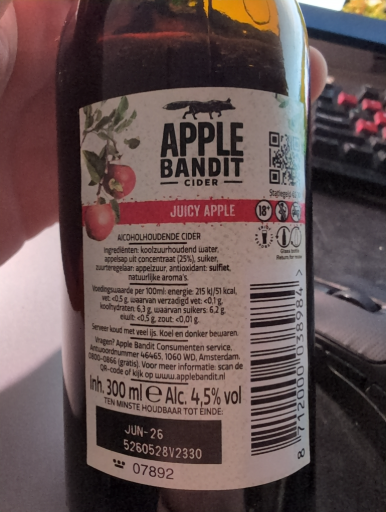 Apple Bandit Cider is a Dutch cider brand known for its delicious Juicy Apple flavor, produced primarily in the Netherlands. The cider contains 4.5% alcohol by volume and is made from concentrated apple juice, carefully blended to provide a refreshing taste experience. The brand emphasizes quality ingredients and the use of traditional cider-making techniques to deliver a product that resonates with cider enthusiasts. As part of Ciders of Europe, Apple Bandit benefits from a robust distribution network in the region.