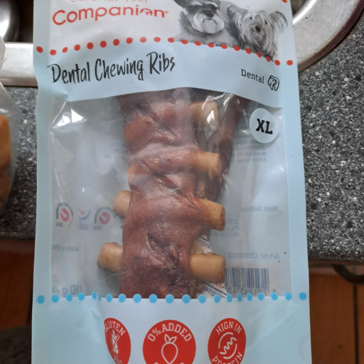 Hartz is a prominent pet care brand established in the United States, recognized for its diverse range of pet products. The Chompathon Rock 'N Rib Bone is a durable, dual-textured dog chew toy designed to withstand long-lasting chomping by passionate chewers. It features a solid core with real chicken flavor and is reinforced with a tough, textured middle that is beef-flavored, providing a tasty and engaging chew experience. The curved rib-shape is easy for dogs to hold, and the rib-like grooves in the center entice chewing, promoting dental health. This product is suitable for medium dogs up to 50 lbs and is available in various shapes and flavors to keep dogs entertained. The manufacturing of this product involves multiple countries, ensuring a global standard of quality and safety.