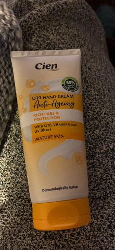 Cien Q10 Hand Cream Anti-Ageing is a personal care product designed to nourish and rejuvenate the skin on the hands. Enriched with Coenzyme Q10, it aims to improve skin elasticity and reduce the appearance of fine lines, providing a youthful appearance. The cream also contains beeswax and vitamin E, which contribute to its moisturizing and protective properties. Additionally, it includes UV filters to protect the skin from harmful sun exposure. The product is manufactured in multiple countries, including Germany, and is sold under the Cien brand, which is owned by Lidl Stiftung & Co. KG, a German global discount supermarket chain. The brand is known for offering a variety of personal care products, including hand creams, at affordable prices. Cien products are available in Lidl stores across Europe and the United States, providing customers with accessible and effective personal care solutions.
