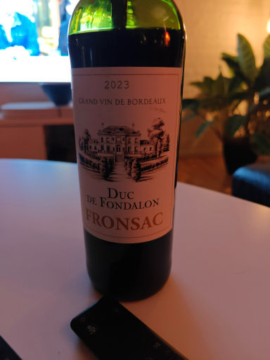 Duc de Fondalon Fronsac is a grand wine from the Bordeaux region of France. Known for its rich flavor profiles, this wine typically showcases a blend of Merlot and Cabernet Franc grapes. The vintage stated here is from 2023, indicative of a recent harvest year. The labeling suggests a high-quality standard, aligning with other wines from this prestigious French region, often celebrated for producing some of the finest varieties globally. However, specific details about the company or ultimate ownership could not be determined from the available information.