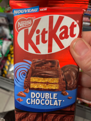 Kit Kat is a popular confectionery brand originally developed by Rowntree's in the United Kingdom and is known for its iconic chocolate bars. The 'Double Chocolat' variety features layers of wafer coated in both milk chocolate and dark chocolate, appealing to chocolate lovers. Today, Kit Kat is owned by Nestlé S.A., which manufactures it in multiple countries, ensuring a wide global availability. The brand has become synonymous with chocolate bars and is distinguished by its catchy slogan, 'Have a break, have a Kit Kat.'