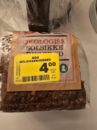 ØGO Solsikkerugbrød is an organic sunflower rye bread produced in Denmark. The product emphasizes quality ingredients, typical of Danish bread-making traditions. The brand ØGO is associated with organic and eco-friendly products, promoting sustainability in food production.