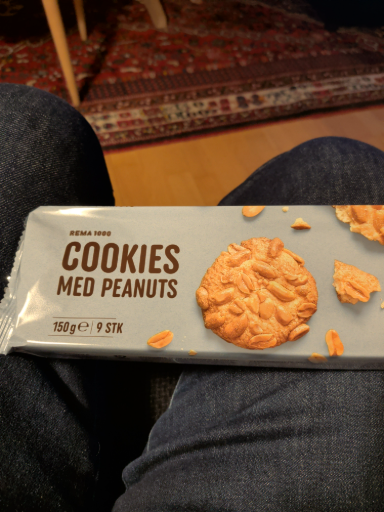 REMA 1000 is a well-known supermarket chain in Denmark that offers a variety of products, including their private label cookies. The packaging indicates that these cookies are enriched with peanuts, making them a delightful snack option for consumers. Manufacturing may occur in multiple countries to meet demand, ensuring quality and taste consistent with the brand's reputation.