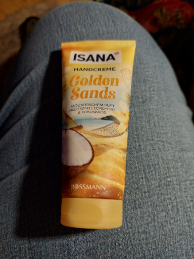 ISANA is a brand owned by Rossmann, a well-known German drugstore chain. The Handcreme Golden Sands is formulated with an exotic scent, featuring ingredients such as vanilla and coconut. It is designed for moisturizing and caring for hands, making it a popular choice for personal care. The product is manufactured in multiple countries, reflecting Rossmann's commitment to quality and accessibility in personal care offerings.