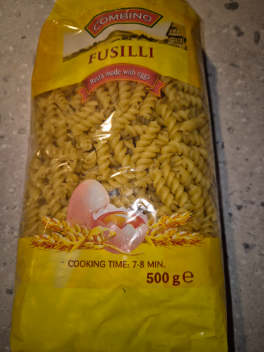 Combino is a brand known for its range of pasta and other food products and is primarily associated with Aldi, which was founded in Germany. The Fusilli pasta showcased in the image is made from eggs, emphasizing quality and flavor. While primarily produced in Italy, where many authentic pasta types originate, it may also be sourced from various other locations. Aldi has become a significant player in the grocery market, offering value products without compromising on quality.
