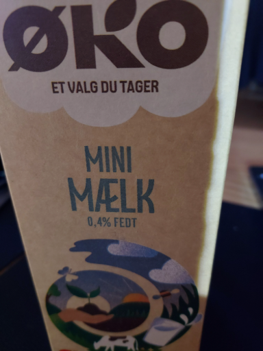 Arla ØKO Minimælk 0,4% is an organic skim milk product with 0.4% fat content, produced by Arla Foods amba, a Danish-Swedish multinational cooperative. The milk is sourced from organic Danish cows, which are grass-fed during the summer and housed in loose housing systems during the winter. The product is homogenized and pasteurized, bearing the red Ø-mærke and Nøglehulsmærket certifications, indicating its organic and healthier choice status. The milk is primarily produced in Denmark, but also produced in other locations. Arla Foods amba is owned by dairy farmers from Denmark, Sweden, the UK, and other countries, making it a multinational cooperative.