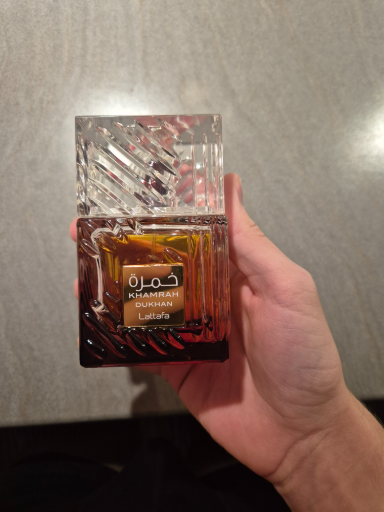 Lattafa Khamrah Dukhan Eau de Parfum is a unisex fragrance from the United Arab Emirates, produced by Lattafa Perfumes. The name 'Khamrah Dukhan' translates to 'smoke' in Arabic, reflecting the perfume's inspiration from the Middle Eastern tradition of burning incense. This scent combines spicy top notes of mandarin, pimento, and smoked spices with a heart of cistus, orange blossom, incense, and patchouli, and a base of tobacco, amber, tonka bean, benzoin, and praline. Lattafa Perfumes, established in the UAE, is renowned for its diverse range of fragrances that cater to various preferences, blending traditional Middle Eastern elements with contemporary styles. The company remains privately owned and continues to operate under its original name, with no known subsidiaries managing the brand locally.