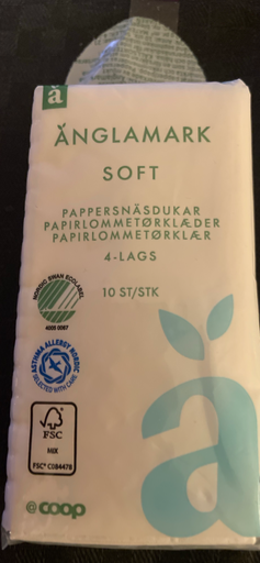Änglamark is a brand that focuses on environmentally friendly products, specifically in the context of Coop. The 'Soft' paper towels indicated in the packaging feature four layers for enhanced softness and absorption. As part of Coop's sustainable product line, Änglamark aims to reduce environmental impact while satisfying customer needs. The product is manufactured in multiple countries, reflecting the global practices of large-scale retailers. Coop, based in Sweden, has a strong emphasis on sustainability and ethical sourcing, positioning itself as a leader in the cooperative sector in Scandinavia.