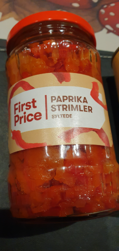 First Price is a well-known private label brand in Denmark, primarily associated with affordable grocery items. The brand is owned by Coop Danmark A/S, which operates several supermarket chains including Irma, SuperBrugsen, and Fakta. The pickled paprika strips, known as 'Paprika Strimler', are among the various products offered under this brand, catering to consumers looking for budget-friendly options. The manufacturing locations are varied, as First Price sources products from multiple countries to ensure competitive pricing and availability.