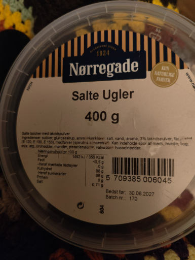 Nørregade is a brand established in 1924 in Denmark, known for producing various snacks. The Salte Ugler, translating to 'Salty Owls', represent a popular snack type in the region. The manufacturing may take place in multiple countries, reflecting the brand's potentially international scope. The brand is primarily recognized for its quirky and diverse snack options, appealing to both local and broader markets.