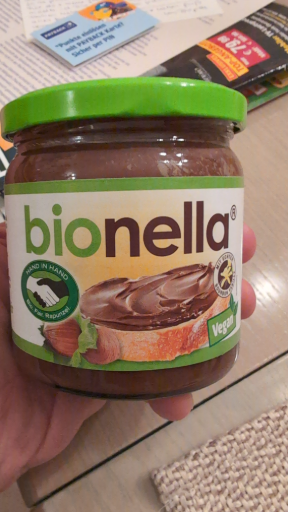 Bionella is a vegan chocolate hazelnut spread produced by Rapunzel Naturkost, a German company known for its organic and fair-trade products. The spread is made from certified organic ingredients, including cane sugar, palm oil, sunflower oil, hazelnuts (14%), low-fat cocoa powder, sweet lupin flour, and Bourbon vanilla. Rapunzel Naturkost emphasizes sustainability and ethical sourcing in its production processes. The product is manufactured in Germany, aligning with the company's commitment to local and sustainable production practices.