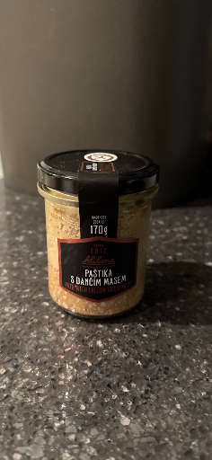 Zlatá daňčí paštika is a premium venison pâté produced by the Czech company Náhlíkovi. This delicacy is crafted according to traditional Czech guild standards, ensuring a rich and authentic flavor. The pâté contains 15% venison meat, complemented by pork liver (26%), pork skin (10%), and pork lard, among other ingredients. It is packaged in a 200g glass jar with a twist-off lid, offering a shelf life of one year from the production date. Náhlíkovi, based in the Czech Republic, is renowned for its commitment to traditional meat processing methods, producing a variety of pâtés and meat products that reflect the rich culinary heritage of the region.