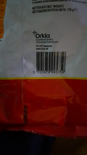 Orkla is a well-known brand in the snack and confectionery market, originating from Norway. The Orkla Group, which owns the brand, specializes in providing consumer goods and operates primarily in the Nordic countries. The product identified here is manufactured in Denmark, indicating a strong local presence for the brand in the region.