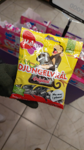 Malaco Djungelvrål is a Swedish confectionery product introduced in 1982 by Cloetta Sverige AB, a subsidiary of Cloetta AB. The product consists of small, black licorice pieces shaped like jungle animals, coated in a layer of salty licorice powder, creating a strong, salty-sweet taste. Djungelvrål, which translates to 'Jungle Roar,' is known for its bold and intense flavor, appealing to those who appreciate the unique taste of Scandinavian salty licorice. The product is manufactured in Sweden and is sold in various countries, including Sweden, Norway, Denmark, Finland, the United States, Israel, and the Netherlands. Cloetta AB, headquartered in Sweden, is the ultimate owner of the Malaco brand, which was established in 1934 under the name Malmö Lakrits Compani by the Danish company Lagerman. Over the years, Malaco has become a well-known brand in the Nordic region, offering a variety of confectionery products. Djungelvrål remains one of its most iconic offerings, cherished by licorice enthusiasts for its distinctive flavor and unique shape.