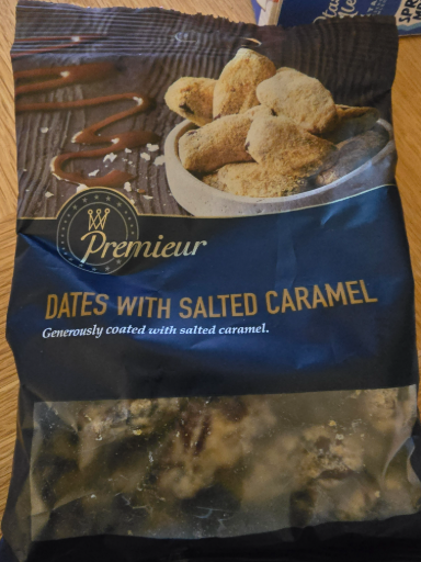 Premieur is a brand that specializes in creating gourmet snacks and candies. The product shown in the image, Dates with Salted Caramel, is a delightful treat combining the natural sweetness of dates with a rich salted caramel coating. While specific ownership details are not available, the brand is believed to originate from Denmark, emphasizing high-quality ingredients and innovative flavors. As the product is marketed broadly, it may be manufactured in multiple countries to meet demand.