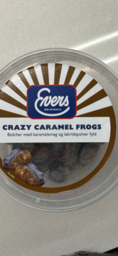 Eners Crazy Caramel Frogs is a confectionery product originating from Denmark, characterized by its unique blend of caramel flavor and licorice filling. While the specific company responsible for its production is not detailed, it reflects the artisanal spirit typical of Danish candy manufacturing. The product, showcased in a clear container, is part of a broader category of sweets that capture local tastes and preferences.