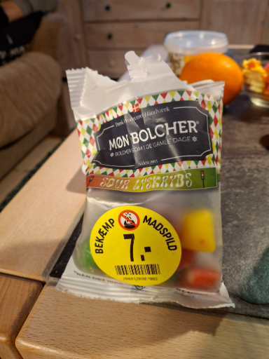 Mon Bolcher is a Danish confectionery brand known for producing various types of traditional candies. Founded in Denmark, they remain a proud local manufacturer, focusing on high-quality, hand-crafted sweets. The product shown in the image is 'Sour Lyksbys', which adds a tangy twist to their classic offerings. Their commitment to quality and tradition can be seen in the ingredients and craftsmanship behind their candy, making them a beloved choice among candy enthusiasts in Denmark.