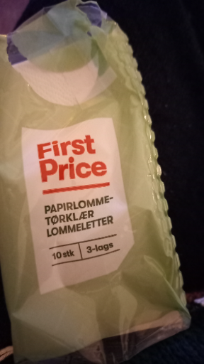 First Price is a private label brand owned by NorgesGruppen, a major grocery wholesaler in Norway. The brand offers a variety of products at competitive prices, catering to cost-conscious consumers. The papel tissues shown in the image, known as 'papir lommetørklær', typically consist of multi-layered sheets designed for personal hygiene. The manufacturing of First Price products is often sourced from multiple countries, ensuring a broad market of availability while maintaining quality standards.