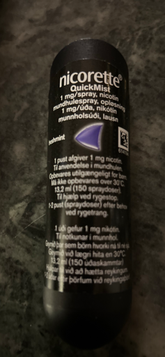 Nicorette QuickMist is a nicotine mouth spray designed to provide rapid relief from nicotine cravings and withdrawal symptoms, aiding individuals in their efforts to quit smoking or vaping. Manufactured in multiple countries, the product is owned by Kenvue, a U.S.-based consumer health company. Nicorette was originally developed by Pharmacia & Upjohn in Sweden, which later became part of Pfizer. The brand has since been acquired by Kenvue, which continues to produce and distribute Nicorette products globally.