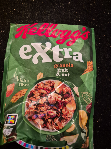 Kellogg's Extra granola fruit & nut is a popular granola product that offers a mix of fruits and nuts, designed for a healthy breakfast or snack option. Originally founded in the United States, Kellogg's has become a recognized brand worldwide. The product is manufactured in multiple countries to meet global demand. As a subsidiary of the Kellogg Company, known for its commitment to quality and nutrition, Kellogg's continues to innovate and offer a variety of delicious and wholesome food products.