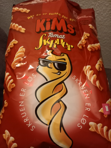 KiMs Tomatskruer is a popular Danish snack produced by KiMs A/S, a company founded in Denmark. The snack is primarily manufactured in Denmark, but production may also occur in other locations. In 2026, KiMs A/S is owned by Orkla ASA, a Norwegian conglomerate specializing in branded consumer goods and financial investments, headquartered in Oslo, Norway. Orkla ASA owns several subsidiaries, including Orkla Danmark, which manages the KiMs brand in Denmark.