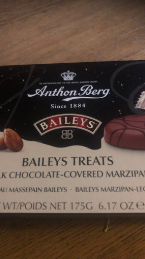 Anthon Berg Baileys Treats are a confectionery product combining smooth marzipan with the distinctive taste of Baileys Irish Cream, all coated in milk chocolate and topped with a swirl of dark chocolate. Manufactured in Denmark by Anthon Berg A/S, a company established in 1884, these treats are a premium offering in the chocolate-covered marzipan category. The brand is owned by Toms Gruppen A/S, a leading Danish confectionery company. Anthon Berg Baileys Treats are available in various sizes, including 33g, 175g, and 350g packages, catering to different consumer preferences. The product is primarily produced in Denmark, ensuring high-quality standards and adherence to Danish confectionery traditions.