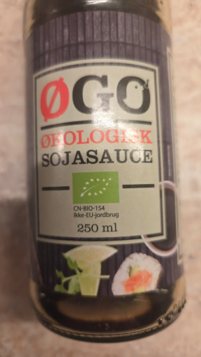 ØGO Økologisk Sojasauce is an organic soy sauce originating from Denmark. It is typically used in various culinary applications, particularly in Asian cuisine. This sauce is packaged in a 250 ml bottle and is marked as organic, indicating compliance with ecological farming standards. While the specific company behind the ØGO brand is not mentioned on the label, it is recognized for its commitment to organic products, primarily targeting consumers looking for eco-friendly food options.